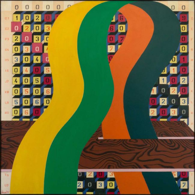 Ulrich Knispel (1911 Alt Schaumburg - Reutlingen 1978) Meßzahlen. 1970.Öl auf Leinwand.Am unteren Bildrand mit roter Farbe signiert und datiert: Knispel, 70.Bildmaß: 130 x 130 cm.In Holzleiste gerahmt: 132 x 132 cm.Verso mit Etikett der Ausstellung: Deutscher Künstlerbund, Bonn 1970.Provenienz:Privatsammlung, Berlin.Ausgestellt in: Deutscher Künstlerbund, 18. Ausstellung, Bonn 1970.Angaben zum Künstler:• Ulrich Knispel war ein deutscher Künstler, geboren 1952 in Recklinghausen.• Er war vor allem für seine künstlerischen Arbeiten im Bereich der Konzeptkunst und der Medienkunst bekannt.• Knispels Werk umfasst eine breite Palette von Medien, darunter Installationen, Fotografien, Skulpturen und Videos.• Er experimentierte mit verschiedenen Materialien und Techniken, um tiefgründige Botschaften und Ideen zu vermitteln.• In seiner Kunst setzte er sich oft mit gesellschaftlichen und politischen Themen auseinander, wobei er eine kritische Perspektive einnahm.• Ulrich Knispel war auch als Hochschullehrer tätig und hat sein Wissen und seine Erfahrung an junge Künstler weitergegeben.• Seine Werke wurden international ausgestellt und sind in bedeutenden Sammlungen und Museen vertreten.