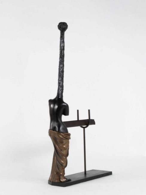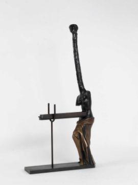 Salvador Dalí (1904 Figueres 1989) Vénus à la Girafe. 1973.Bronze mit dunkelbrauner Patina.Mit Stempelsignatur und -nummerierung auf der Plinthe: Dalí, 915/1500.Maße: 56,5 x 9,5 x 27,5 cm.WVZ.: Descharnes 69.Provenienz:Privatsammlung, Niedersachsen.Angaben zum Künstler:"Eines Tages wird man offiziell zugeben müssen, daß das, was wir Wirklichkeit getauft haben, eine noch größere Illusion ist als die Welt des Traumes." (– Salvador Dalí)