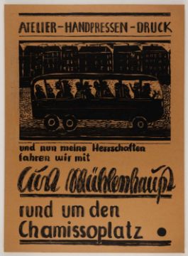 Kurt Mühlenhaupt (1921 Klein Ziescht - Zehdenick 2006) Rund um den Chamissoplatz. 1972.Mappenwerk 23 Blättern, mit 14 Holzschnitten, 3 Farblinolschnitten sowie 4 Textseiten mit farbigen Linolunterdrucken auf verschiedenfarbigem Ingres-Bütten, in illustriertem Titelumschlag mit montiertem Holzschnitt. In Original-Mappe. Mit beiliegendem Impressum.Mit einer Bleistiftzeichnung auf der Innenseite des Mappendeckels und auf dem Deckblatt.Auf der Innenseite des Mappendeckels mit Bleistift signiert: Kurt Mühlenhaupt. Sowie auf jedem Blatt am unteren Blattrand mit Bleistift signiert und nummeriert: Kurt Mühlenhaupt, 117/180.Blattmaß jeweils: 64,2 x 49 cm.Mappenmaß: 72,5 x 53 cm.Hrsg. von: Hugo Hoffmann, Berlin 1972.Provenienz:Sammlung G. F. Büchner.
