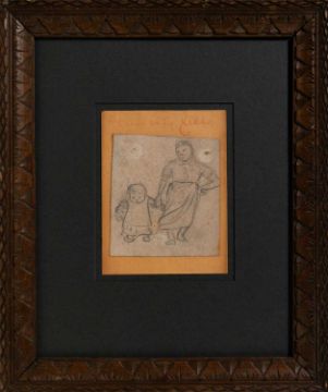 Bleistift auf Karton, auf braunem Papier montiert.