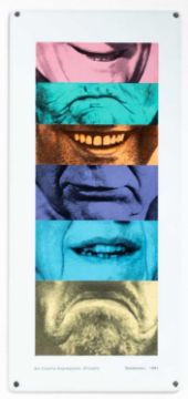 John Baldessari (1931 National City, CA - Venice, CA 2020) Six Colorful Expressions (Frozen). 1991. Farbserigrafie auf Porzellan-emaillierter Stahlplatte. Verso auf einem Editionsetikett signiert und nummeriert: Baldessari, 28/75. Sowie unterhalb der Darstellung typografisch bezeichnet, betitelt und datiert: Baldessari, Six Colorful Expressions (Frozen), 1991. Bildmaß: 26,5 x 12 x 0,5 cm. Hrsg. von: Parkett-Verlag, Zürich. Provenienz:Privatsammlung, Berlin. Angaben zum Werk: "On the evidence of his images, Baldessari argues for the metaphysical atmosphere of pictoriality and the pictorial nature of abstraction. Thus, any image that aspires to portray the historical moment must do so by enclosing it - by stopping its pulse and suspending the laws of its nature." (– Dave Hickey, Parkett Nr. 29, 1991.)