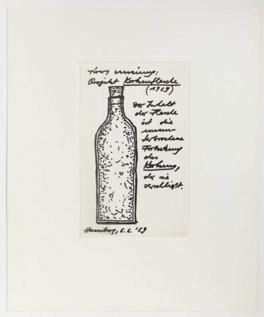 Drucksigniert, -betitelt und -datiert: timm ulrichs, Projekt Korkenflasche, 1969.