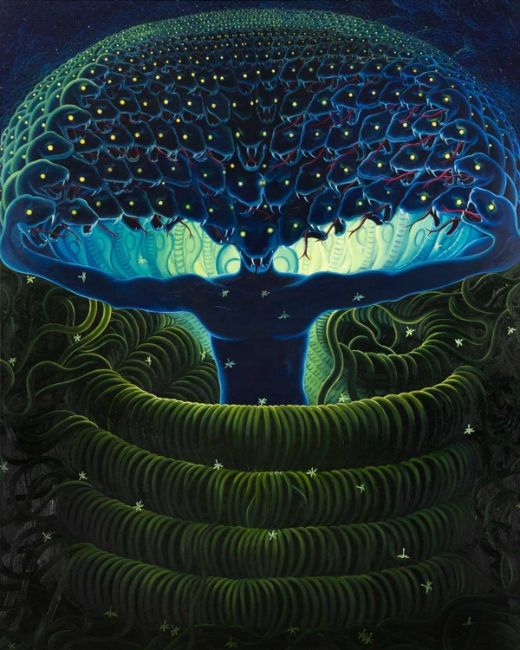 Ratheesh T. erlangte Bekanntheit durch seine großformatigen figurativen Gemälde, die Impressionen aus seinem Heimatstaat darstellen.