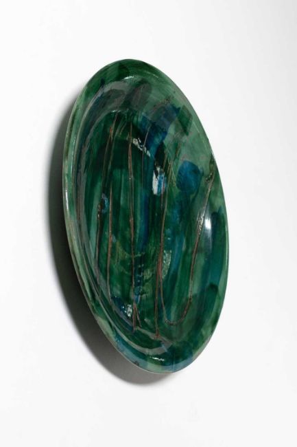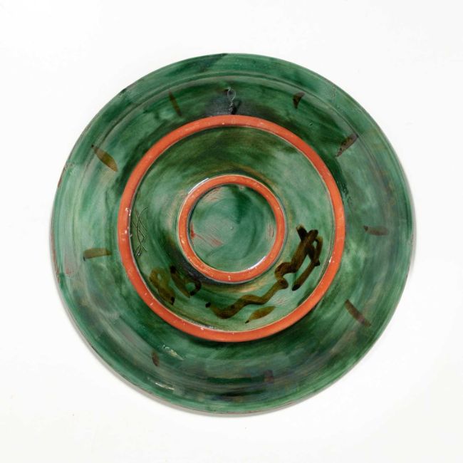 Günther Förg (1952 Füssen - Freiburg 2013) Ohne Titel. 1998.Fayence, polychrom glasiert und eingeritzt.Verso signiert und datiert: Förg, 98.Maße: Ø 47 cm.Der Teller ist unter der Nummer WVF.98.S.1213 im Archiv des Estate Günther Förg registriert.Provenienz:Privatsammlung, Berlin.Erworben bei Galerie Mikael Andersen, Kopenhagen.Angaben zum Künstler:• 1973 begann Förg sein Kunststudium bei Karl Fred Dahmen an der Akademie für Bildende Künste in München.• 1992 auf der documenta IX in Kassel vertreten.• 1992 - 1998 Professur Staatliche Hochschule für Gestaltung Karlsruhe.• 1999 - 2013 Professur Akademie der Bildenden Künste München• 1995 bedeutende Ausstellung am Stedelijk Museum in Amsterdam.• 1996 Auszeichnung mit Wolfgang-Hahn-Preis.• Der Estate Förg wird von der renommierten Galerie Hauser & Wirth vertreten.