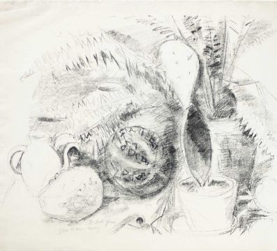 Stilleben mit Kaktus, Krug und Melone. 1919.