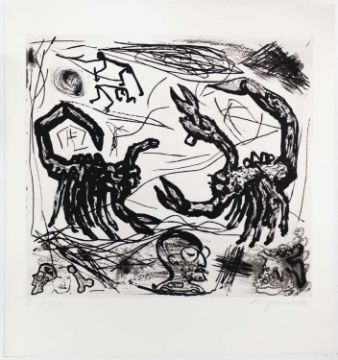 Serie von fünf Aquatinten und Kaltnadelradierungen, jeweils auf Bütten.