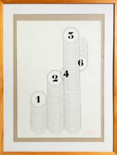 Am unteren Blattrand mit rotem Buntstift signiert, datiert und nummeriert: Milan Grygar, 1970, 8/20.