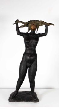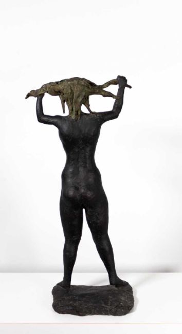 Bronze, patiniert und teilweise farbig gefasst.
