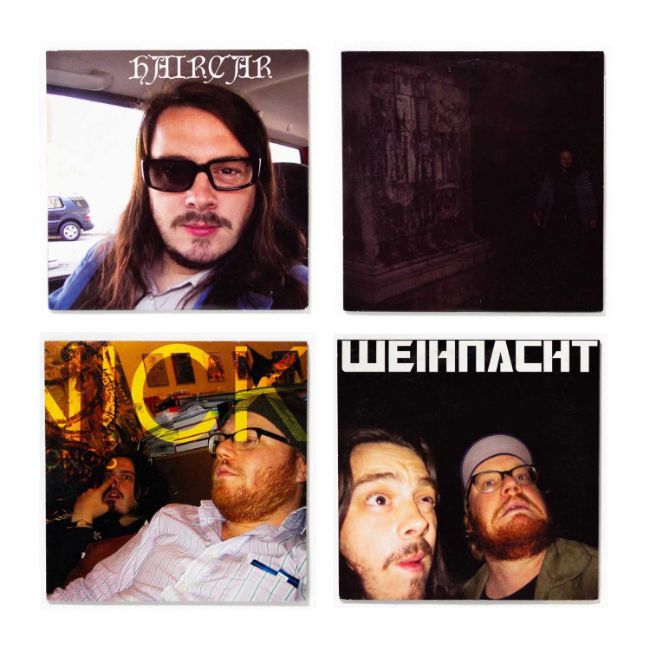 Vier farbige 7-inch LPs.