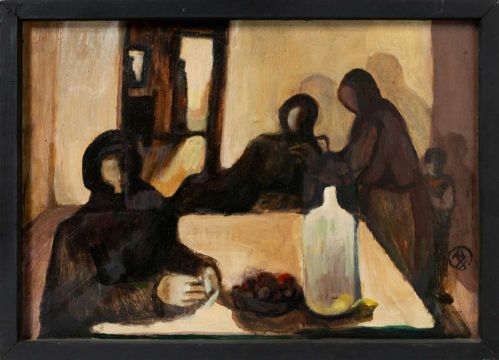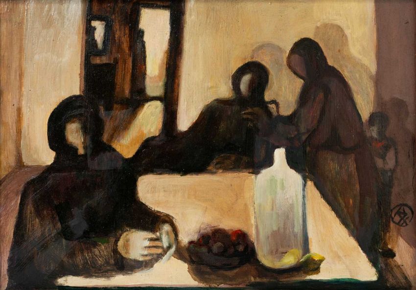 Öl auf Hartfaserplatte.