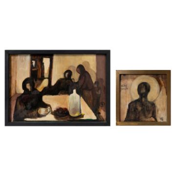 Beigegeben: Ikone, Öl auf Holz (beschädigt).