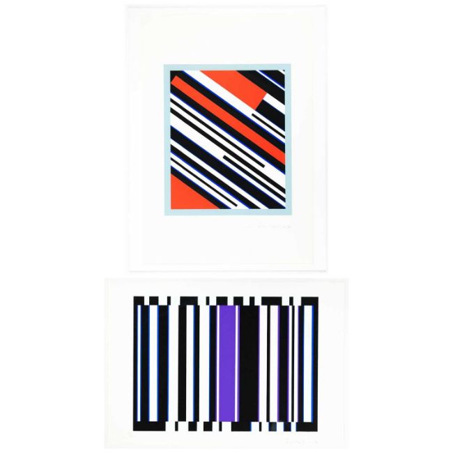 Zwei Farbserigrafien, jeweils auf leichtem Karton. Ein Blatt auf Unterlagekarton montiert.