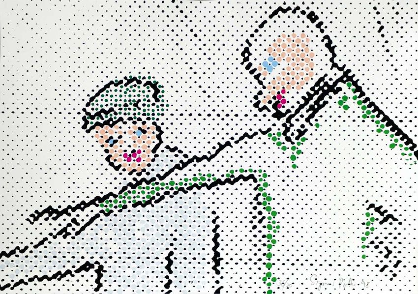 Sigmar Polke war ein deutscher Maler und eine zentrale Figur der zeitgenössischen Kunst, bekannt für seine experimentellen Arbeiten, die Medien, Materialien und Stile mischen. Nach einem Studium an der Kunstakademie Düsseldorf entwickelte Polke eine Bildsprache, die Elemente von Pop-Art, Abstraktion und Surrealismus vereint. Seine Arbeiten, wie die berühmte „Rasterbilder“-Serie, verwenden Siebdruckverfahren und reflektieren den Einfluss der Konsumkultur. Polke stellte mehrfach auf der Documenta aus und vertrat Deutschland auf der Biennale von Venedig 1986, wo er den Goldenen Löwen erhielt. Seine Werke sind in internationalen Sammlungen wie dem Museum of Modern Art in New York und der Tate Modern in London vertreten, und er gilt als einer der bedeutendsten deutschen Künstler des 20. Jahrhunderts.