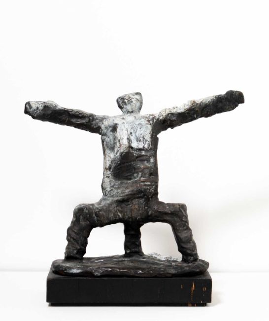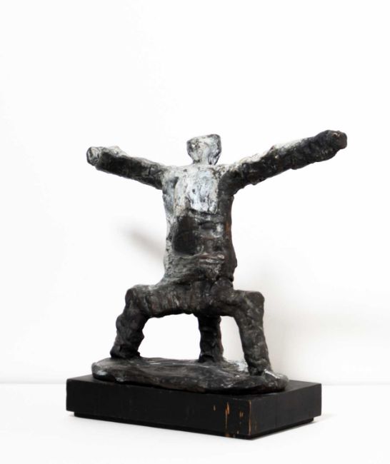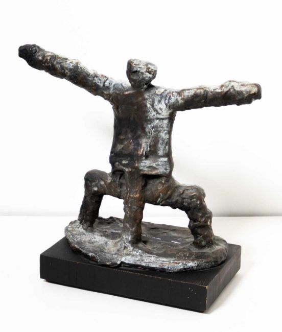 Bronze, teilweise mit weißer Patina. Auf schwarzem Holzsockel (5,5 x 28,5 x 17,3 cm) montiert.