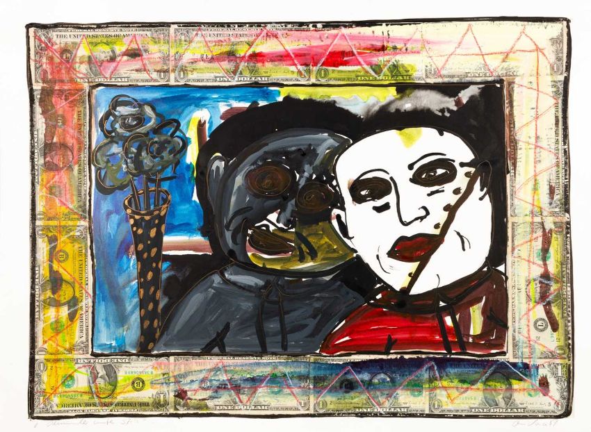 Am unteren Blattrand mit Bleistift signiert, betitelt und datiert: andora, Sammler unter sich, 89.