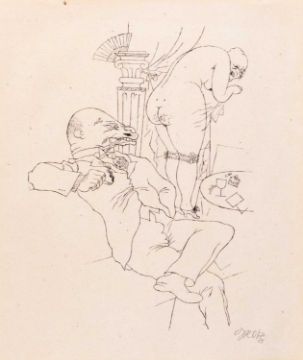 Angaben zu Werk: Aus: Alfred Richard Meyer: Munkepunke Dionysos. Groteske Liebesgedichte, Verlag Fritz Gurlitt, Berlin 1921, für das Grosz je 6 Illustrationen schuf.