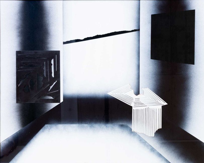Acryl, Lack und unterschiedliches Papier, collagiert.