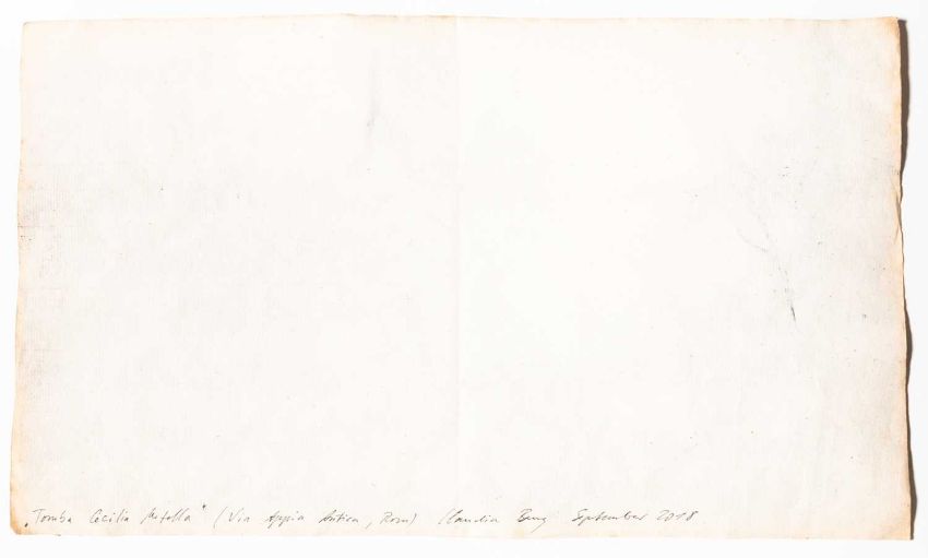 Verso mit schwarzem Fineliner signiert, betitelt und datiert: Claudia Berg, "Tomba Cecilia Metella" (Via Appia Antica, Rom), September 2018.