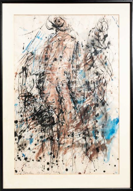 Am unteren Blattrand mit Tinte signiert, betitelt und datiert: Gerda Lepke, Zwei Figuren, Dresden, 10.Juli.1991.