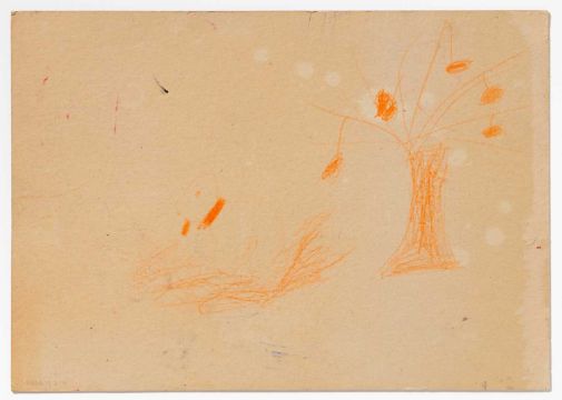 Wachsmalstift auf Graupappe.