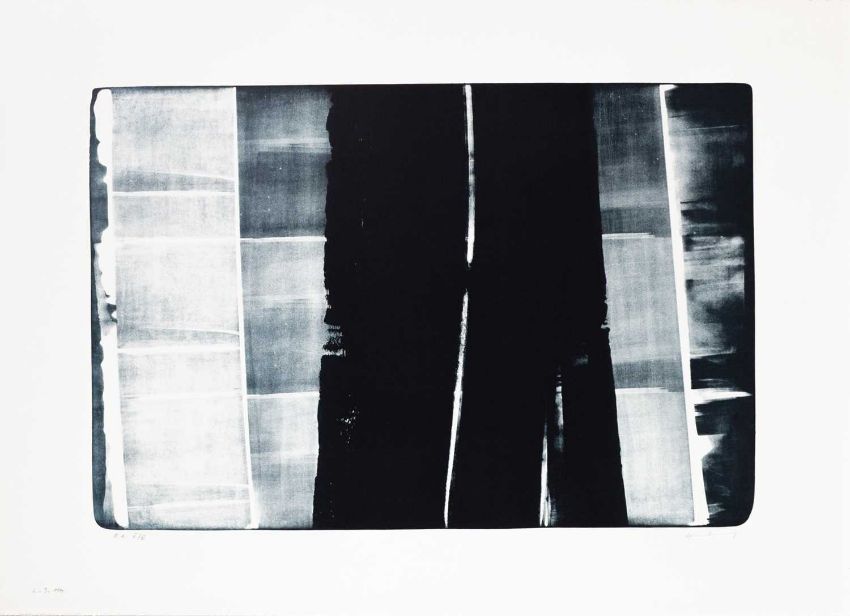 Hans Hartung (1904 Leipzig - Antibes 1989) L_9_1974. 1974. Lithografie auf BFK Rives Velin. Am unteren Blattrand mit Bleistift signiert, betitelt, datiert und nummeriert: Hartung, L_9_1974, 1974, E.A. II/XV. Blattmaß: 75 x 105 cm. Provenienz:Privatsammlung, Berlin. Vorbesichtigung: Lise-Meitner-Straße 7-9, 10589 Berlin.
