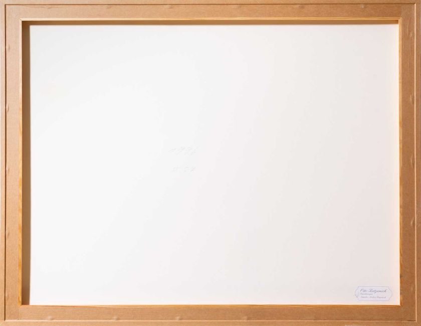 Im Objektrahmen freigestellt und unter entspiegeltem Glas gerahmt: 70,5 x 90,5 cm.
