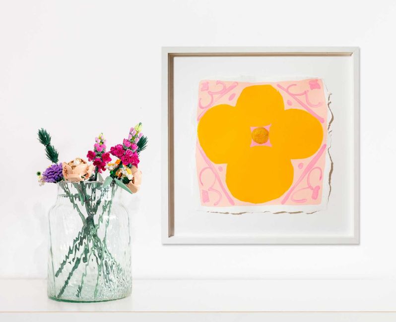 Im Objektrahmen freigestellt und unter Glas gerahmt: 52,5 x 52,5 cm.