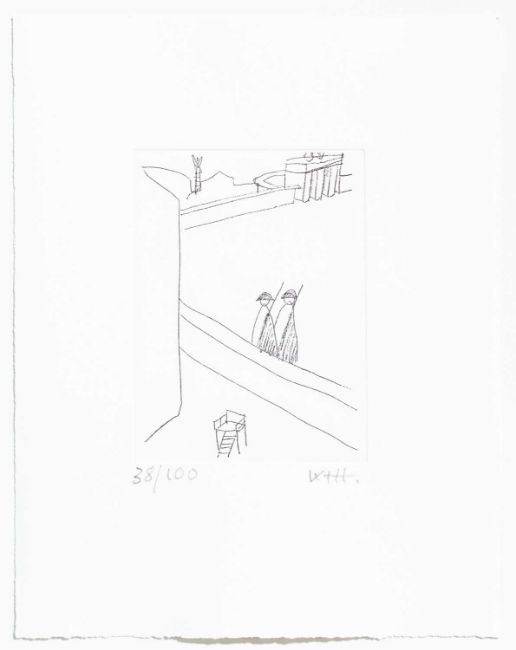 Karl Horst Hödicke (1938 Nürnberg - Berlin 2024) Berliner Mauer. 1987. Radierung auf Velin. Unterhalb der Darstellung mit Bleistift monogrammiert und nummeriert: KHH, 38/100. Blattmaß: 27,7 x 21,9 cm. Provenienz:Privatsammlung, Sachsen-Anhalt. Vorbesichtigung: Lise-Meitner-Straße 7-9, 10589 Berlin.