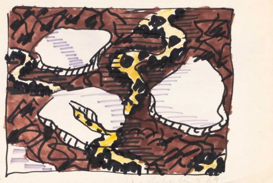 Bernd Koberling (1938 Berlin – lebt in Berlin) Ohne Titel. 1969. Filzstift auf Papier. Am unteren Blattrand mit Bleistift signiert und datiert: B. Koberling, 69. Blattmaß: 14,8 x 21 cm. Provenienz:Privatsammlung, Berlin. Vorbesichtigung: Lise-Meitner-Straße 7-9, 10589 Berlin.