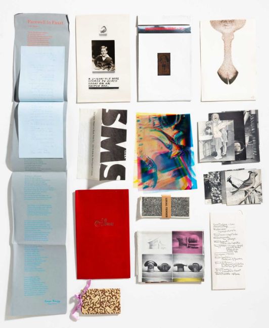 Publikation mit unterschiedlichen Drucken, Fotografien, Collage, und gebundenen Reproduktionen. In Falt-Mappe.