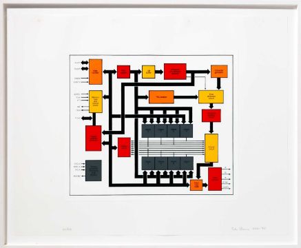 Peter Halley (1953 New York City – lebt in New York city) R Ohne Titel (aus: the organizational charts suite). 1988/1990. Vier Farbserigrafien, jeweils auf Transparentpapier. Jeweils am unteren Blattrand mit Bleistift signiert, datiert und nummeriert: Peter Halley, 1988-90, 48/50. Blattmaß: 78 x 97 cm bzw. 97 x 78 cm. Im Objektrahmen freigestellt und unter Acryl-Glas gerahmt: 88,2 x 107,2 cm, bzw. 107,2 x 88,2 cm. Dieses Lot unterliegt der Regelbesteuerung. 28,50% Aufgeld auf den Zuschlagpreis. 19% MwSt. auf die Summe von Zuschlag und Aufgeld. Provenienz:Privatsammlung, Berlin. Zur Vorbesichtigung in der Lise-Meitner-Str. 7-9, 10589 Berlin.