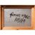 Emaille-Reklameschild, übermalt, auf Keilrahmen genagelt und in Holzleiste gerahmt.