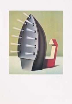 Konrad Klapheck (1935 Düsseldorf 2023) Die Schwiegermutter. 1980. Farblithografie auf Velin. Unterhalb der Darstellung mit Bleistift signiert und nummeriert: Klapheck, 114/160. Blattmaß: 88,5 x 62 cm. Provenienz:Privatsammlung, Bayern. Zur Vorbesichtigung in der Lise-Meitner-Str. 7-9, 10589 Berlin.