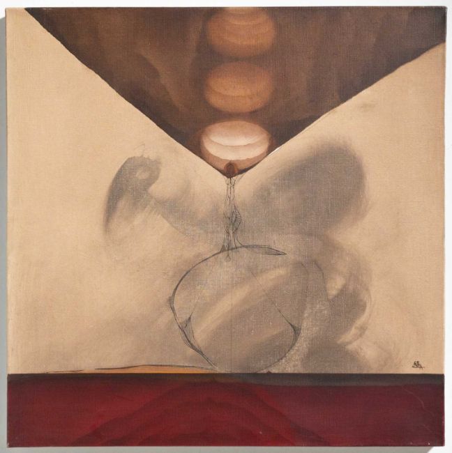 Innerhalb der Darstellung in Öl signiert und datiert: M. Bea, 68. Sowie verso auf einem Galerie-Etikett betitelt und datiert: Figuración abstracta, 1968.