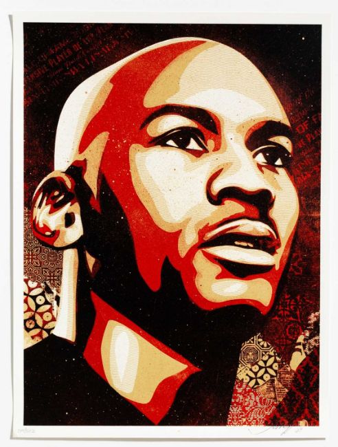 Shepard Fairey (1970 Charleston – lebt in Los Angeles) Michael Jordan Hall of Fame. 2009. Farbserigrafie auf leichtem Karton. Am unteren Blattrand mit Bleistift signiert, datiert und nummeriert: Fairey, 09, 219/523. Blattmaß: 61 x 45 cm. Provenienz:Privatsammlung, New York. Zur Vorbesichtigung in der Lise-Meitner-Str. 7-9, 10589 Berlin.