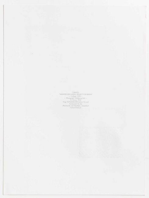 Christo und Jeanne-Claude (1935 Gabrowo - New York City 2020 / 1935 Casablanca - New York City 2009) Wrapped Reichstag, Project For Berlin. 1994. Farboffset mit Silberfolie collagiert. Am unteren Blattrand mit blauem Wachsmalstift signiert: Christo. Sowie verso mit typografischen Angaben. Blattmaß: 40 x 30 cm. Hrsg. von: SCHUMACHER Edition Fils und Kunstverein für die Rheinlande und Westfalen, Düsseldorf. Zustand: Fleck. Provenienz:Privatsammlung, Berlin. Zur Vorbesichtigung in der Lise-Meitner-Str. 7-9, 10589 Berlin.