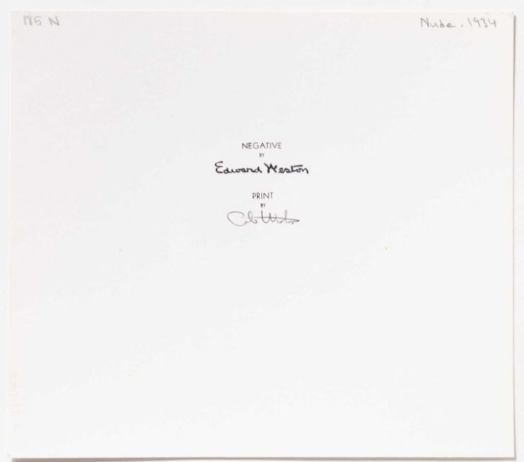 Verso mit typografischem Nachlass-Stempel: Negative by Edward Weston. Sowie mit Bleistift vom Drucker signiert: Print by Cole Weston (posthumer Abzug).