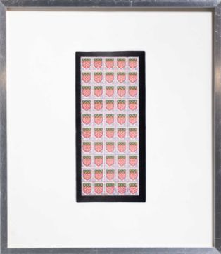 Am unteren Rand auf dem Briefmarkenblock in Tinte signiert: Arman.