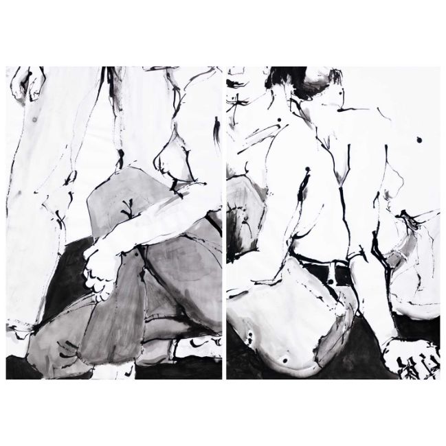 Zwei Tuschezeichnungen, jeweils auf Papier.