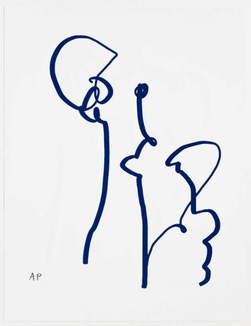 Michaela Eichwald (1967 Gummersbach – lebt in Berlin) Ohne Titel. 2021. Farbserigrafie auf Saunders Waterford Aquarellpapier, beidseitig. Am unteren Blattrand signiert sowie verso am unteren Blattrand nummeriert: M. Eichwald, AP. Blattmaß: 65 x 50 cm. Hrsg. von: Handsiebdruckerei, Berlin: D. P. P. F. U. (Dear Printer Print For Us). Provenienz:Privatsammlung, Berlin. Angaben zur Künstlerin: Doppelbödigkeit. Mindestens zwei Seiten derselben Sache statt eindeutiger Einseitigkeit. In zart versponnenem Rapport legt MICHAELA EICHWALD (*1967) einzelne Linien auf’s Blatt. Zeigen sie wie in Lawrence Sternes Tristram Shandy die überwiegende Verworrenheit des Lebensweges? Die annähernde Unplanbarkeit der Folgen des eigenen Tuns wie Duchamps Stoppagen? Oder sind es Spielereien wie Polkes Dürer-Schleifen? Vielleicht von allem etwas. (– Handsiebdruckerei, Berlin) Zur Vorbesichtigung in der Lise-Meitner-Str. 7-9, 10589 Berlin.