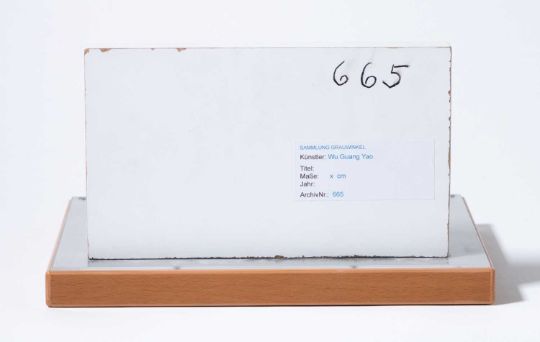 Guang Yao Wu (1959 Shanghai – lebt in Karlsruhe) Ohne Titel. Um 1999. Mehrteilige Skulptur aus Acryl, Acrylglas und Sperrholz. Mit aufliegendem Schaumstoff-Ei. Mit Sammlungsetikett, dort typografisch bezeichnet. Maße: 31 x 17,5 x 22,5 cm. Provenienz:Sammlung Grauwinkel. Zur Vorbesichtigung in der Droysenstraße 13, 10629 Berlin.