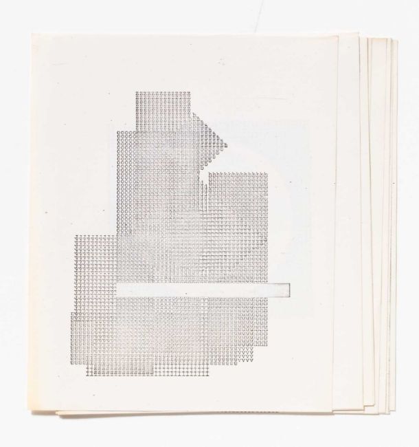 Zwei Mappen, jeweils mit lose eingelegten Grafiken, u.a. mit Ausschnitten. Eine Mappe mit beiliegender Publikation von Gedichten, sowie lose beiliegende Schwarzweiß-Kopien.