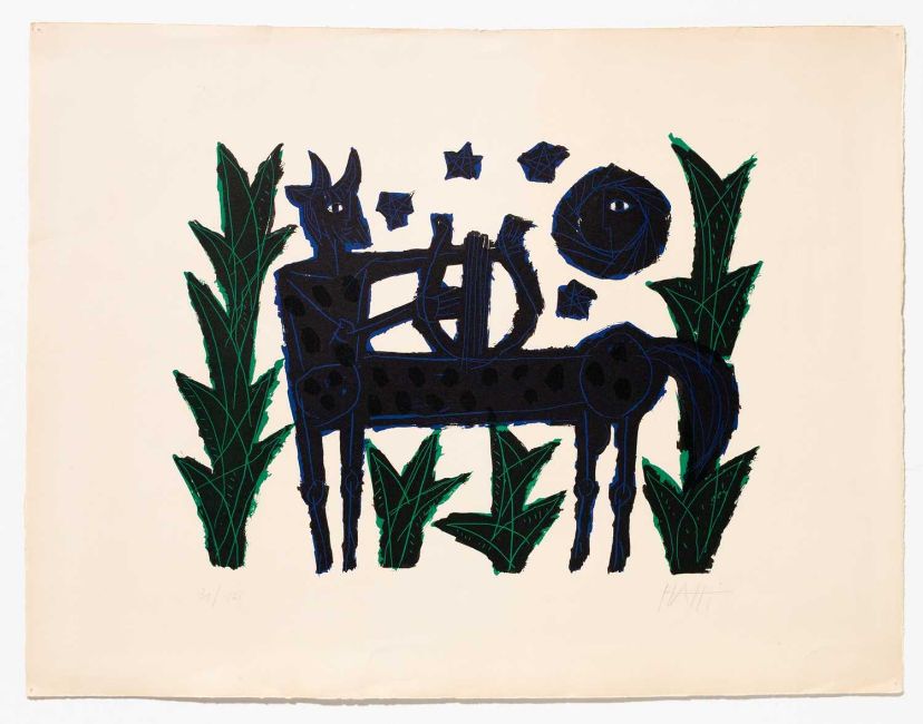 Celestino Piatti (1922 Wangen - Duggingen 2007) Ohne Titel. Farbserigrafie auf chamoisefarbenem Velin. Am unteren Blattrand mit Bleistift signiert und nummeriert: PIATTI, 31/165. Blattmaß: 50 x 65,5 cm. Provenienz:Privatsammlung, Bremen. Zur Vorbesichtigung in der Lise-Meitner-Str. 7-9, 10589 Berlin.