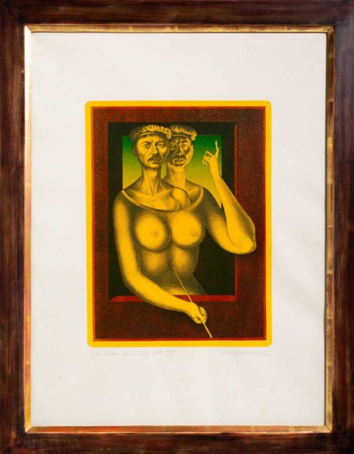 Unterhalb der Darstellung mit Bleistift signiert, betitelt, datiert und nummeriert: Rudolf Hausner, Adam bei sich, 1969, 7/60.
