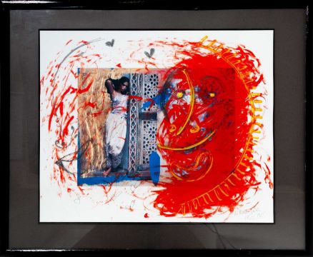 Farblithografie auf Velin. Mit Acryl und Bleistift unikatär überarbeitet.