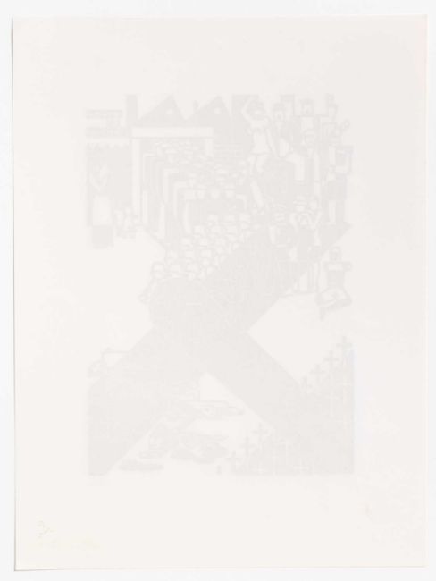 Am unteren Blattrand mit Bleistift signiert, betitelt, datiert und nummeriert: G. Arntz, Krieg, 1931/76, 18/100.