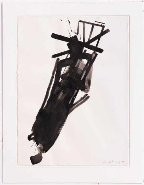 K.R.H. Sonderborg (1923 Sønderborg - Hamburg 2008) Ohne Titel. 1982. Tusche auf Papier. Am unteren Blattrand mit Bleistift signiert und datiert: Sonderborg, 82. Blattmaß: 76 x 56,5 cm. Unter Passepartout montiert: 92 x 72 cm. Provenienz:Sammlung Dr. Claus Wiedmann und Gerda Wiedmann, Nürnberg. Zur Vorbesichtigung in der Lise-Meitner-Str. 7-9, 10589 Berlin.