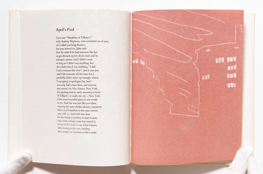 Gebundenes Buch mit elf Original-Linolschnitten von Alex Katz sowie zehn Gedichten von Vincent Katz, jeweils auf Ingres D’Arches Papier.